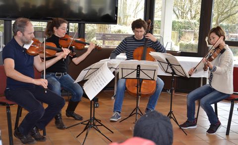 Saal gebannt dem Amaryllis Quartett, das diese ungewöhnliche Unterrichtsstunde